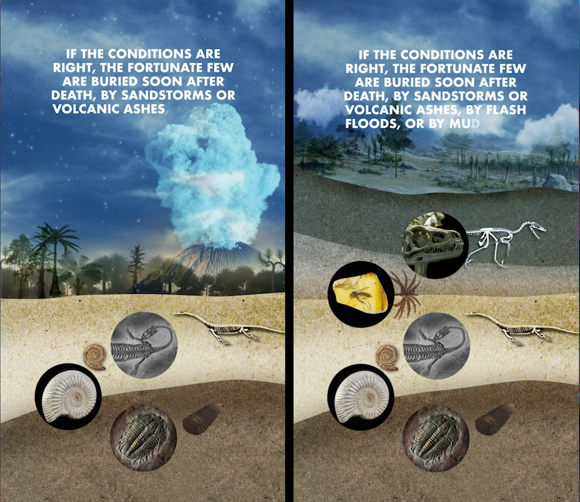 Discovering incredible ancient life forms that existed millions of years ago, up to the time of dinosaurs.