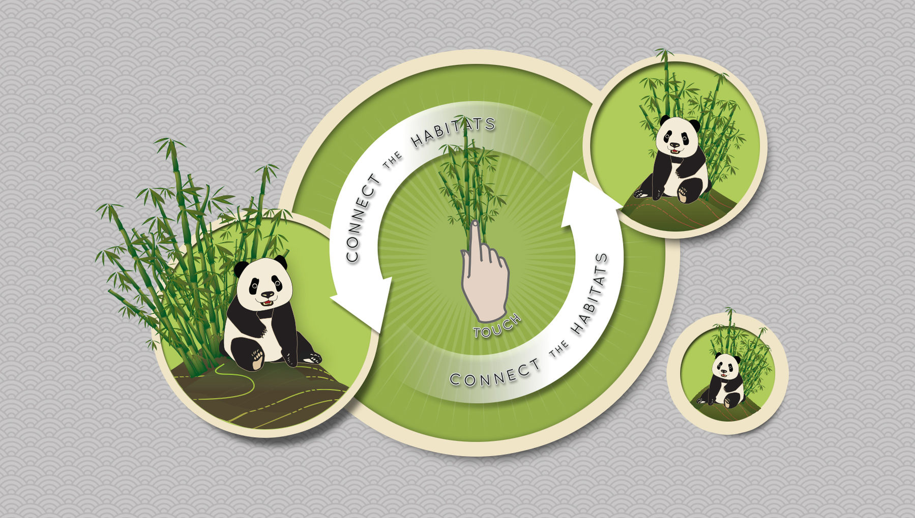 For the Toronto Zoo, we developed three diverse and complex media experiences. A centerpiece media installation was titled "Connect the Habitats" and it enables visitors to understand the challenges that Pandas face for survival as they encounter environmental fragmentation. The media experience is a group interactive, featuring a large scale multi-user multi-touch wall where visitors are challenged to work together to link panda habitats in order for the panda populations to not only survive, but thrive. The message of the experience underscores that Pandas require human intervention to help build connected habitats. The media experience inspires visitors to think of environmental challenges and the opportunities to help this species thrive. The graphic user interface is inspired by traditional motifs of Chinese scroll paintings and iconography developed in way that is fresh, modern and fun. The interactive welcomes youngsters and adult audiences in collaborating to a dedicated purpose: learning how to help pandas thrive.